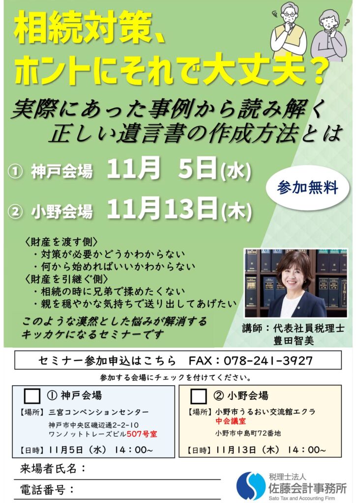 そこでこの度、どのようなポイントを押さえて遺言書を用意すればいいか、事例を交えてのセミナーを11月に開催することになりました。